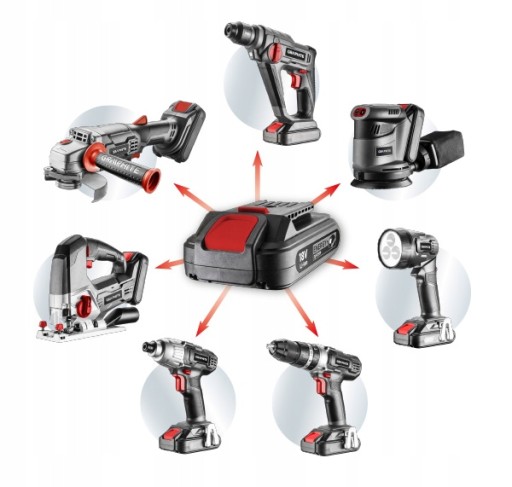 - Napięcie akumulatora: 18 V