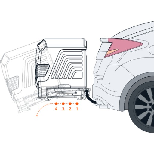 Funkcja całkowitego odsunięcia bagażnika umożliwia otwarcie klapy bez potrzeby demontażu boksa z haka. Dodatkowo box odchyla się przez co załadunek jest jeszcze łatwiejszy.