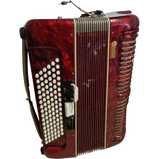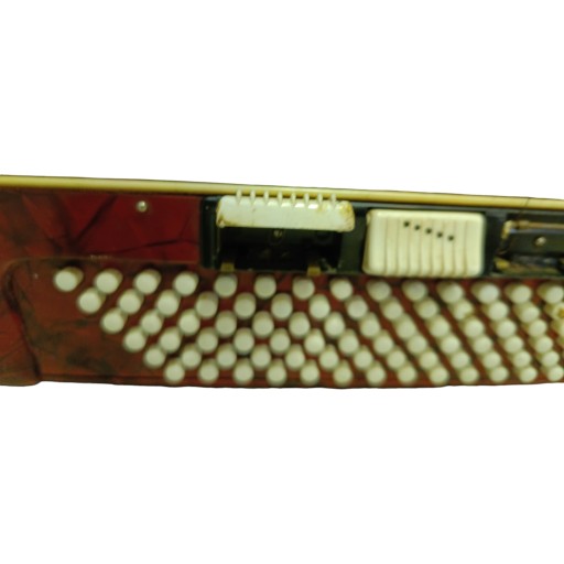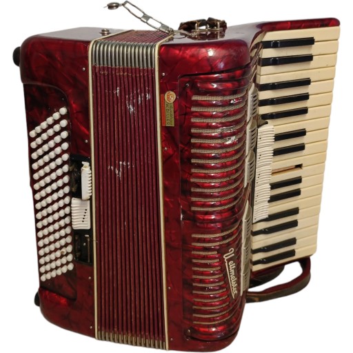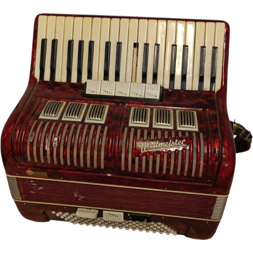 Ciekawy ładny akordeon Weltmeister. Akordeon wymaga wkładu w celu poprawienia jego wyglądu i funkcjonalności. Brak jednej nakładki na czarny klawisz. Uszkodzone nakładki i klawisze registrów basowych. Można je przełączać I działają nie ma problemu. Registry z przodu działają normalnie. Miech jest cały. Akordeon gra bardzo ładnie. Dźwięki są soczyste i naprawdę ładne. Akordeon wymagający wkładu. Akordeon jest używany i nosi normalne ślady użytkowania. Zapraszam do zakupu.
