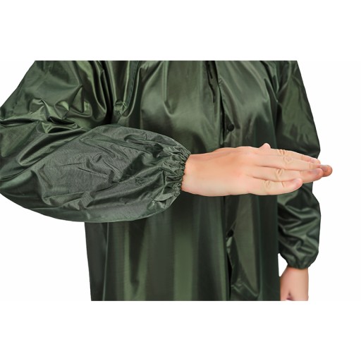 - Wodoodporny i wiatroszczelny płaszcz przeciwdeszczowy z kapturem i długimi rękawami . Mocny gumowy materiał jest całkowicie wodoodporny, dzięki czemu ubrania będą suche.