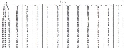 Dla wymiaru swojej moskitiery znajdź mnożnik z tabelki.