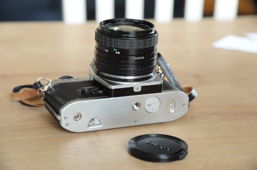 Zestaw w pełni sprawny, W body wszystkie funkcje działają poprawnie wraz z pomiarem światła ( baterie w zestawie), szkła obiektywu czyste, żadnych rys, paprochów, przysłona sprawna, dekielek,pasek