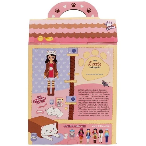 Lalka - z brązowymi włosami i brązowymi oczami. Lottie jest wolontariuszką w schronisku dla zwierząt. Pomaga dbać o bezdomne koty i psy.