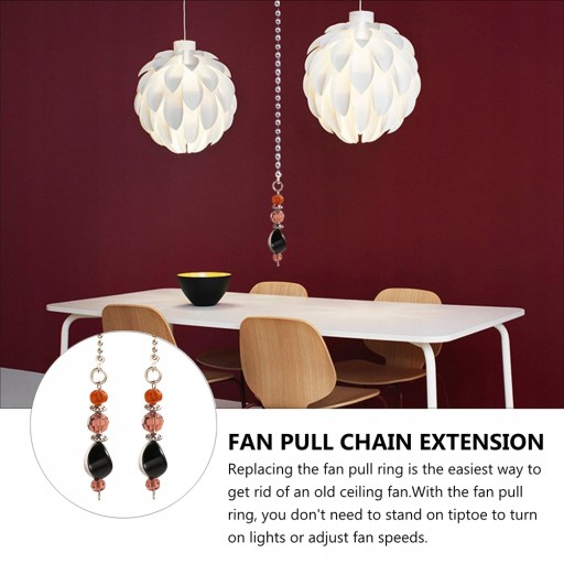 Jest to zestaw łańcuchów ciągnięcia wentylatora, które są wykonane z wysokiej jakości materiałów, trwałej i mogą być używane przez długi czas obszar pewny dodawać blasku swoimi wentylatory sufitowe. 95% żyrandolowe Wentylatory zmieści tych łańcuchów ciągnąć.