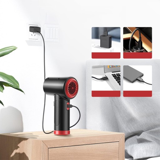 - Ten oczyszczacz sprężonego powietrza jest wyposażony w akumulator o dużej pojemności 6000 mAh, który można ładować przez USB, co pozwala na bezprzewodowe działanie. Pełne naładowanie zapewnia do 40 minut ciągłej pracy, zapewniając doskonałą przenośność.