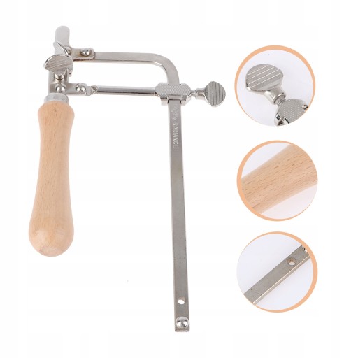 Ten uchwyt piły jest ostry w przypadku biżuterii z akcesoriami dla majsterkowiczów. Drewniany antypoślizgowy uchwyt do wygodnego chwytu i odporny na zużycie kształt piły w kształcie litery U do praktycznego zastosowania. Zestaw ten obejmuje również wymienne brzeszczoty, trwałe i przydatne narzędzie ręczne.