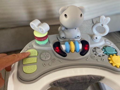 - Produkt posiada edukacyjny panel, który zawiera szereg niespodzianek czekających na małych odkrywców Po wypięciu panelu z tacki chodzika posłuży on jako niezależna zabawka, np. jako zabawka w podróży, a blat przyda się jako stolik do zabaw.
