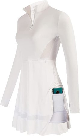 JACK SMITH Damska tenisowa sukienka golfowa z kieszeniami Długi rękaw Odprowadzająca wilgoć sportowa sukienka sportowa z szortami