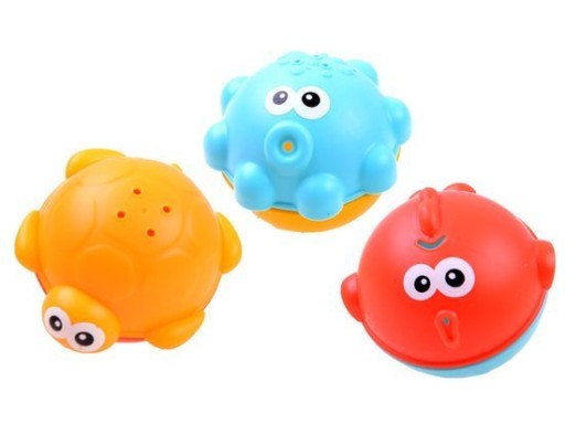 Zabawki (z wyjątkiem gumowych zwierzątek) są wykonane z wysokiej jakości tworzywa sztucznego. Ciekawe, intensywne kolory przyciągają uwagę i zachęcają do zabawy. Gumowe zwierzątka posiadają otwory, dzięki którym można robić mini fontannę. Dziurki w kubeczkach posłużą do przelewania wody, a w rozkładanych kulach można schować jakiś mały skarb. Podbierak posiada przyssawkę, dzięki której może być organizerem na zabawki. Siatka w podbieraku ma wszyty ściągacz, a rączka jest regulowana- podczas kąpieli można zagrać w wodną koszykówkę. Komu uda się dzisiaj trafić zabawką do celu?