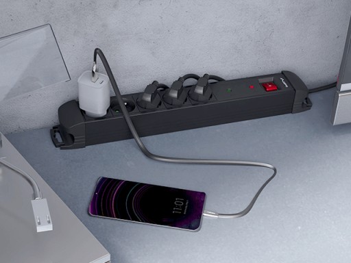 Удлинительный кабель с защитой от перенапряжения и переключателем, 5 розеток, 1,5 м