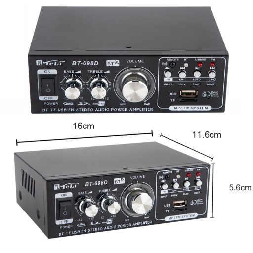 CYFROWY WZMACNIACZ MOCY DŹWIĘKU STEREO AMPLITUNER BLUETOOTH
