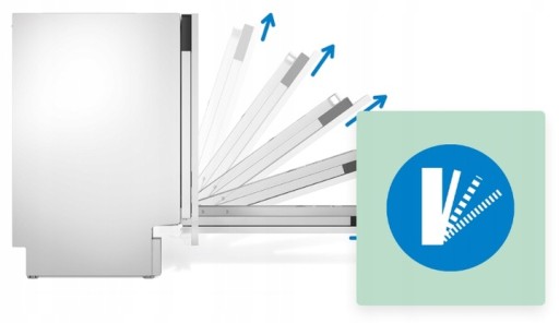 Po zakończonym cyklu zmywania drzwi zmywarki otworzą się automatycznie, dzięki czemu zgromadzone w środku naczynia wyschną znacznie szybciej – i to bez Twojej ingerencji. Dzięki temu rozwiązaniu zmywarka zużywa również mniej prądu, osiągając wysoką klasę energetyczną