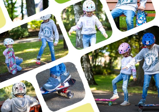 Kask jest przeznaczony dla dzieci jeżdżących na rowerze, rolkach, wrotkach, hulajnodze itp.