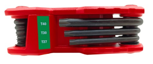 Zestaw zawiera klucze TORX w rozmiarach: T9, T10, T15, T20, T25, T27, T30 & T40