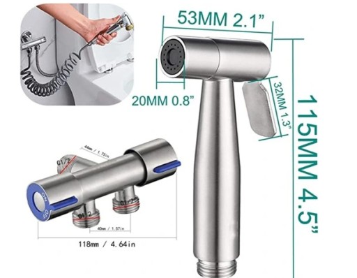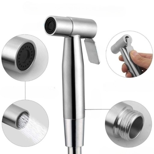 Dane techniczne: Kolor: srebrny Ciśnienie nominalne; 0,6MPa Waga; 0,62kg Zastosowanie: Bidet, spłukiwanie, czyszczenie, spryskiwacz do pieluch, mycie, higiena kobieca Materiał: stal nierdzewna 304 wąż; 2metry produkty zawierające: zestaw 4-częściowy Zraszacz może być stosowany do mycia, ogrodnictwo, do czyszczenia podłóg, dla zwierząt domowych, w tym do pryszniców, spłukiwania toalety, mycia warzyw, etc. It jest bardzo nadaje się do stosowania jako bidet opryskiwacz, aby pomóc prania.Jest bardzo łatwy w użyciu. która jest gładka i trwała w użyciu i łatwa do czyszczenia.Ergonomiczny uchwyt jest łatwy do trzymania.