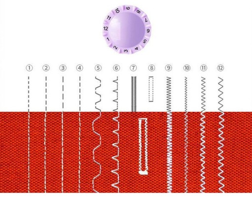 ➡️ Rodzaj ściegu: linia prosta + krzywa, 12 rodzajów ściegów
