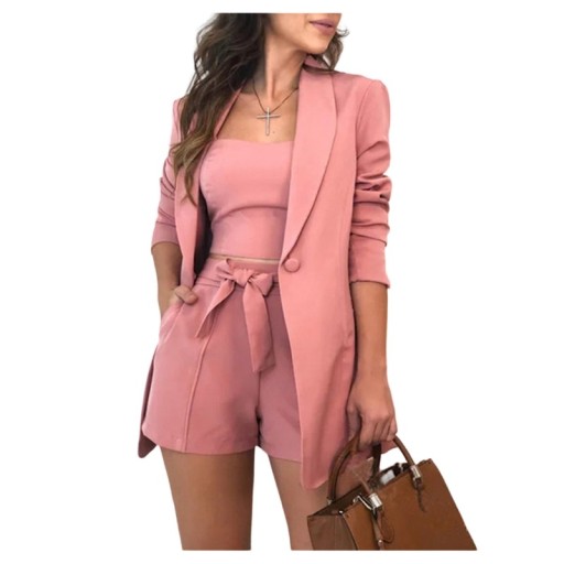 Damski 3-częściowy garnitur z otwartym przodem, marynarką i szortami. Marynarka i krótki garnitur. Modny zestaw strojów