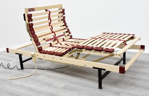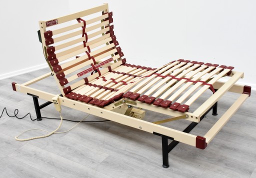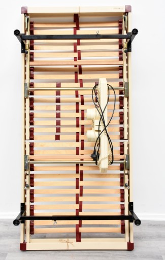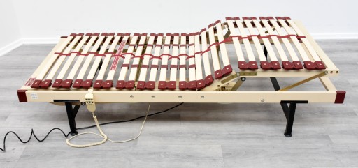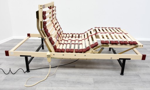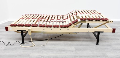 Stelaż, pochodzenie Niemcy, wykonany ze stabilnym raszek, dostosowujących się do obciążenia, w zestawie pilot regulujący różne wysokość, podnoszenie osobno część głowy, osobno część nóg, 100% sprawny, posiada długi kabel około 3 metrów