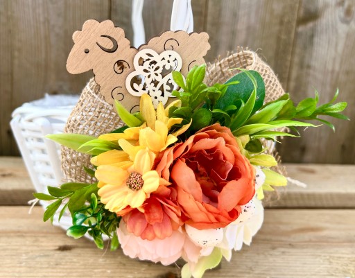 - dekoracja jest mocowana do koszyka za pomocą wstążeczek.