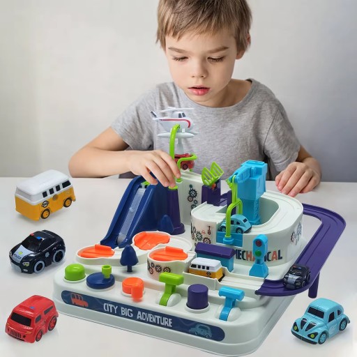 Ten zestaw nie wymaga użycia baterii, co oznacza, że zabawa nie ma końca! Do zestawu dołączone są 4 auta, które poruszają się po torze, pokonując różnorodne przeszkody. Rozwijaj umiejętności manualne i kreatywność dziecka dzięki tej wspaniałej zabawce!