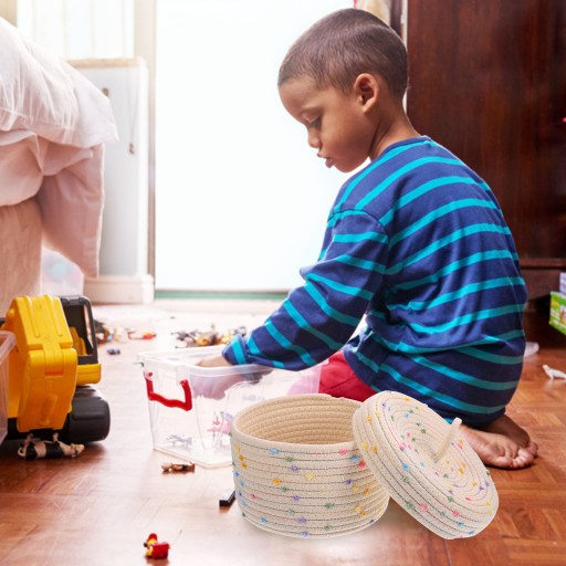 Тканая корзина для хранения косметики с крышкой и круглым шнуром