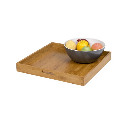 Bambusowa taca łączy w sobie dwie funkcje, może służyć jako taca do przenoszenia dań, a także jako blat do stolika. Wykonana w całości z drewna bambusowego wysokiej jakości. Solidna konstrukcja sprawi, ze można przenosić na niej ciężkie przedmioty. wymiary: 5,0(wys) x 40,0 x 40,0cmwaga: 1,2kg