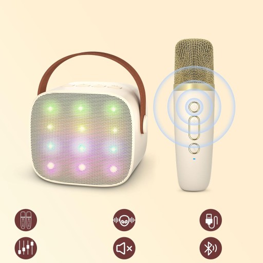 ✅【Maszyna do karaoke z mikrofonem】 Maszyna do karaoke z mikrofonem bezprzewodowym jest wyposażona w wysokiej jakości głośniki zapewniające czystą jakość dźwięku i dużą głośność. Kolorowe światła LED odbijają się w rytm muzyki. Dostępny z 1 mikrofonem. Nie tylko do śpiewania, ale może być również używany jako odtwarzacz muzyki lub głośnik