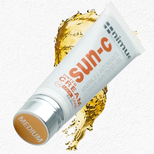 Nimue Sun-C Tinted SPF 40 Moisturizer w odcieniu Medium to zaawansowany krem nawilżający z filtrem przeciwsłonecznym, który zapewnia ochronę przed szkodliwym promieniowaniem słonecznym oraz delikatnie wyrównuje koloryt skóry.
