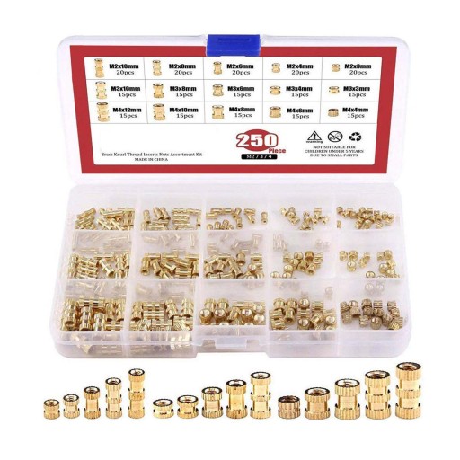 250 szt. Nakrętki radełkowane z mosiądzu miedzianego Zestaw asortymentowy z gwintem metrycznym