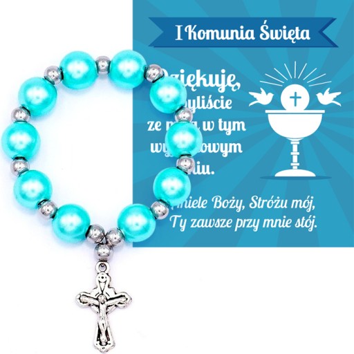 Wszystkie produkty (różaniec, kartka oraz folijka) umieszczamy w paczce do samodzielnego spakowania - kartkę należy włożyć do woreczka razem z różańcem i zakleić.