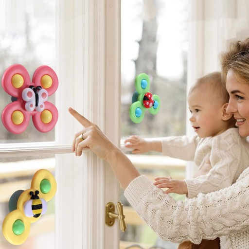 ⭐ W zestawie znajdują się 3 sztuki spinerów w trzech różnych kolorach. Spinery można zabrać wszędzie i przyczepić wszędzie dzięki gumowym przyssawkom. Zabawke można przyczepić zarówno do szyby w czasie podróży oraz do wanny w czasie kąpieli (zabawkę można moczyć).