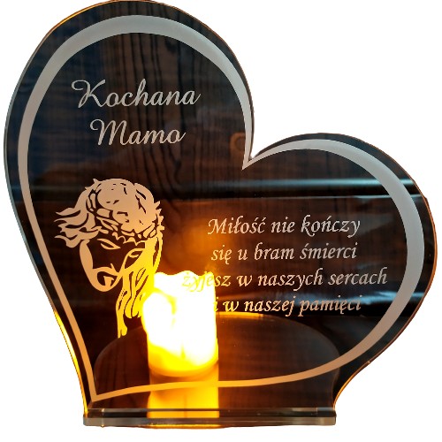 Duża podstawka pod znicz akrylowa XXL w kształcie serca.
