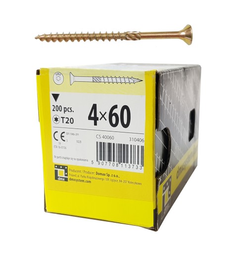 - Wkręty zostały wykonane zgodnie z normą PN-EN 14592-2008 W niniejszej Normie Europejskiej podano wymagania i metody badań dotyczące materiałów, geometrii, wytrzymałości, sztywności i trwałości (tj. ochrony przed korozją) łączników stosowanych w nośnych konstrukcjach drewnianych