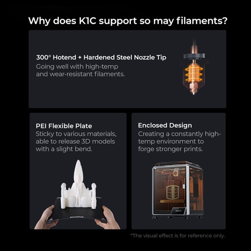 K1C jest dostarczany do Ciebie w pełni zmontowany i już skalibrowany! Wstępnie zainstalowany prosty przewodnik szybkiego startu przeprowadzi Cię przez konfigurację drukarki 3D, dzięki czemu możesz od razu rozpocząć drukowanie!