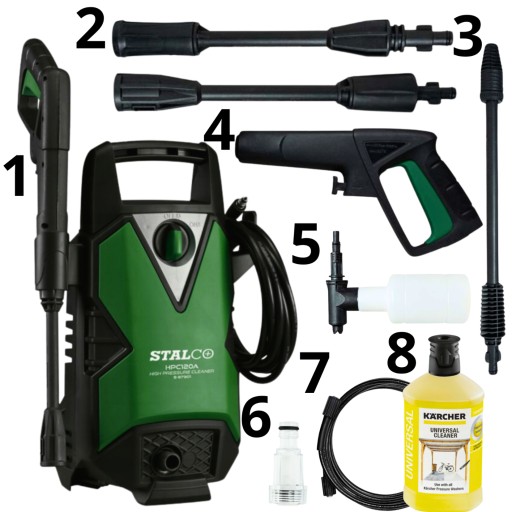 MYJKA CIŚNIENIOWA STALCO PRO 120 BAR MOCNA ZESTAW PŁYN KARCHER SAMOSSĄCA