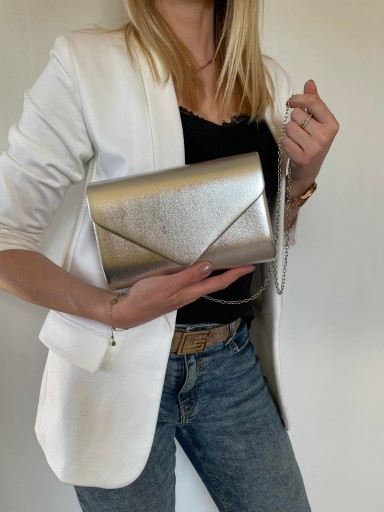 Srebrna WIECZOROWA wizytowa torebka KOPERTÓWKA SKÓRA EKO