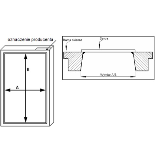 - WYMIAR KONTROLNY A i B mierzony na zewnątrz ramy okna (nie przy szybie)