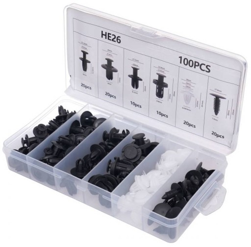 Zestaw spinek i klipsów mocujących do tapicerki100szt. wykonany z największej jakości materiałów. Zestaw składa się z najpopularniejszych spinek samochodowych, które występują w takich markach jak: BMW, AUDI, LEXUS, MERCEDES, OPEL, SKODA, TOYOTA, RENAULT, CITROEN ITP.