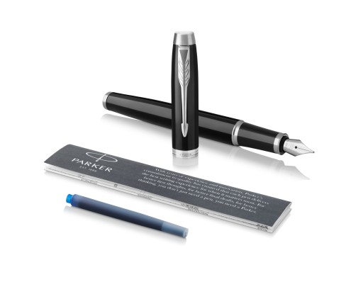 Przepiekne i bardzo eleganckie pióro wieczne Parker IM. Czarny kolor nadaje mu elegancji oraz stylu, dzieki czemu chetnie wybierane jest ono jako prezent przy rozmaitych okazjach.