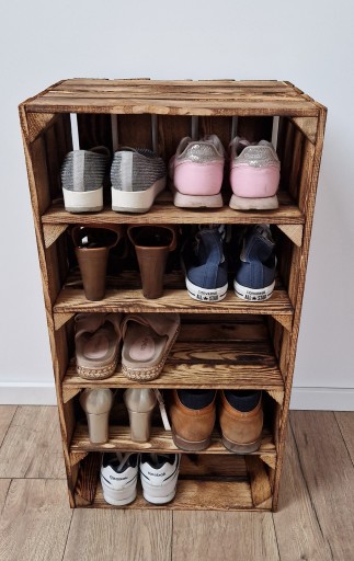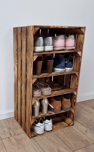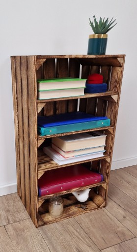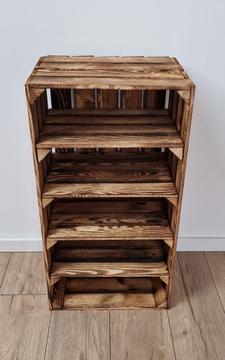 DREWNIANA SKRZYNKA Z 4 PÓŁKAMI, ROZMIAR 75x40x30 CM, KOLOR OPALANY