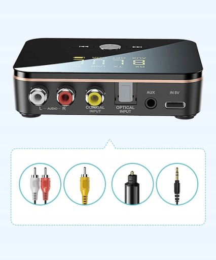 Wysokiej jakości nadajnik i odbiornik Bluetooth w jednym. Jako nadajnik Bluetooth wysyła sygnał audio do odbiornika Bluetooth, na przykład słuchawek lub głośnikw Bluetooth. Jako odbiornik może działać jako słuchawki stereo (po podłączeniu słuchawek wejściem 3.5mm) lub podłączeniu do innego urządzenia audio. Odbiornik uzyskuje sygnał audio z innego urządzenia przez Bluetooth.