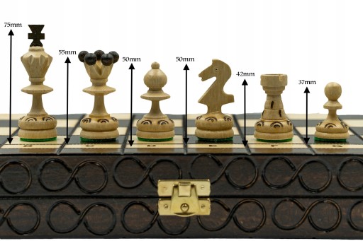 ✅ kasetka ze stalowymi zawiasami zamykana na zatrzask, wyposażona w praktyczny wkład na pionki,