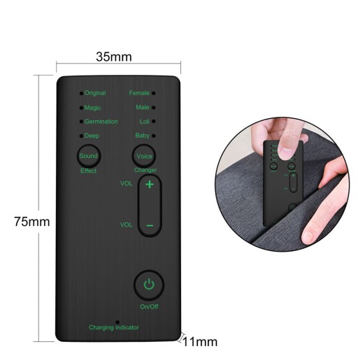 4. Łatwy w użyciu: zmieniacz głosu jest bardzo mały, łatwy do przenoszenia, plug and play. Bardzo łatwy w użyciu, nie trzeba instalować żadnych sterowników. Po prostu umieść ten zmieniacz głosu blisko ust, a dźwięk zmieni się zgodnie z twoimi preferencjami