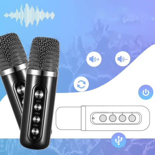 БЕСПРОВОДНОЙ КАРАОКЕ-МИКРОФОН BLUETOOTH ДИНАМИК С 2 МИКРОФОНАМИ