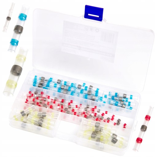 Zestaw szybkozłączek z cyną w rurce termokurczliwej do naprawy i łączenia przewodów.