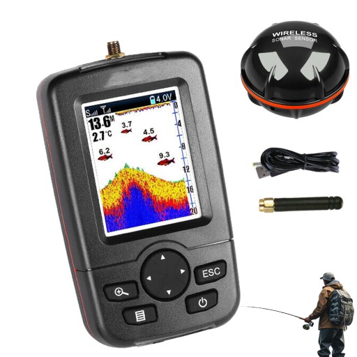 🐟️ BEZPRZEWODOWA ECHOSONDA O ZASIĘGU 100 M Z CZUJNIKIEM SONAROWYM DO ŁODZI RYBACKIEJ Z PRZYNĘTĄ