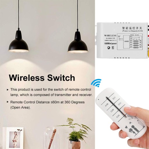 4. Szybka i łatwa instalacja, bez przeszkód ze strony ścian i możliwość podłączenia dowolnego obciążenia. Pilot i przełącznik mogą być używane jednocześnie dla wygody i elastyczności.