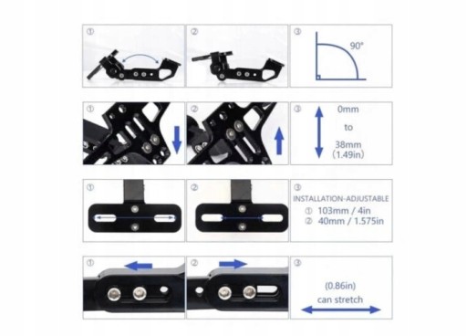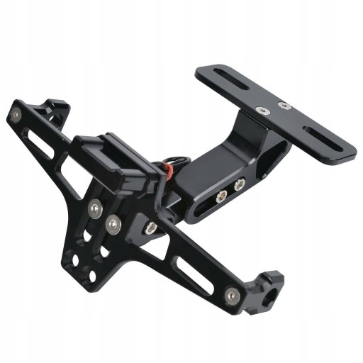 wysoka jakość Materiał:Uchwyt tablicy rejestracyjnej motocykla wykorzystuje wysokiej jakości stop aluminium, lekki, mocny i trwały, można go regulować pod różnymi kątami poziomymi od podłoża, aby zapewnić dobrą widoczność na drodze.