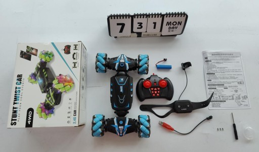 - Dzieci i dorośli mogą używać gestów, aby cieszyć się większą przyjemnością z jazdy. Samochód zdalnie sterowany zawiera akumulatory, a pilot do zegarka i zwykły pilot nie zawierają baterii.