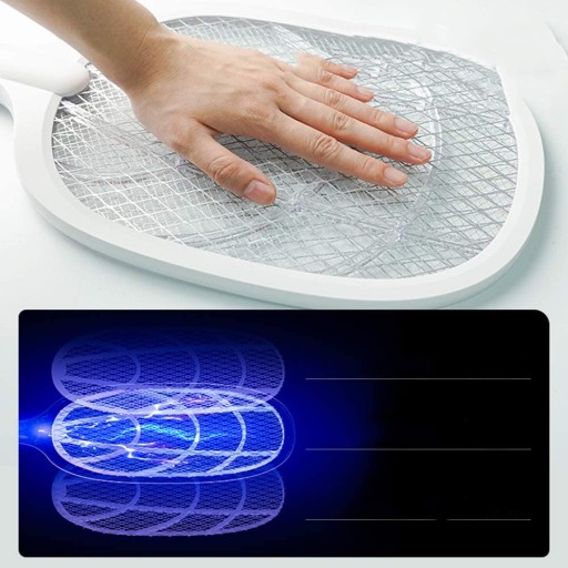 Nasz elektryczna łapka w formie rakiety LED może być używana ręcznie do łapania pojedynczych owadów latających. Wbudowana bateria o pojemności 1200 mAh pozwoli na użytkowanie jej przez długi czas bez konieczności ładowania. Dzięki dołączonej podstawce z funkcją zasilania jest możliwość ustawienia packi pionowo jako formę stojącej pułapki. Urządzenie nie wydziela trujących substancji do otoczenia i pracuje bezgłośnie, więc można jej używać w sypialni podczas snu. Co ważne, urządzenie ma podwójny wyłącznik zwiększający bezpieczeństwo używania oraz wbudowane diody wskazujące poziom naładowania i tryb pracy urządzenia.